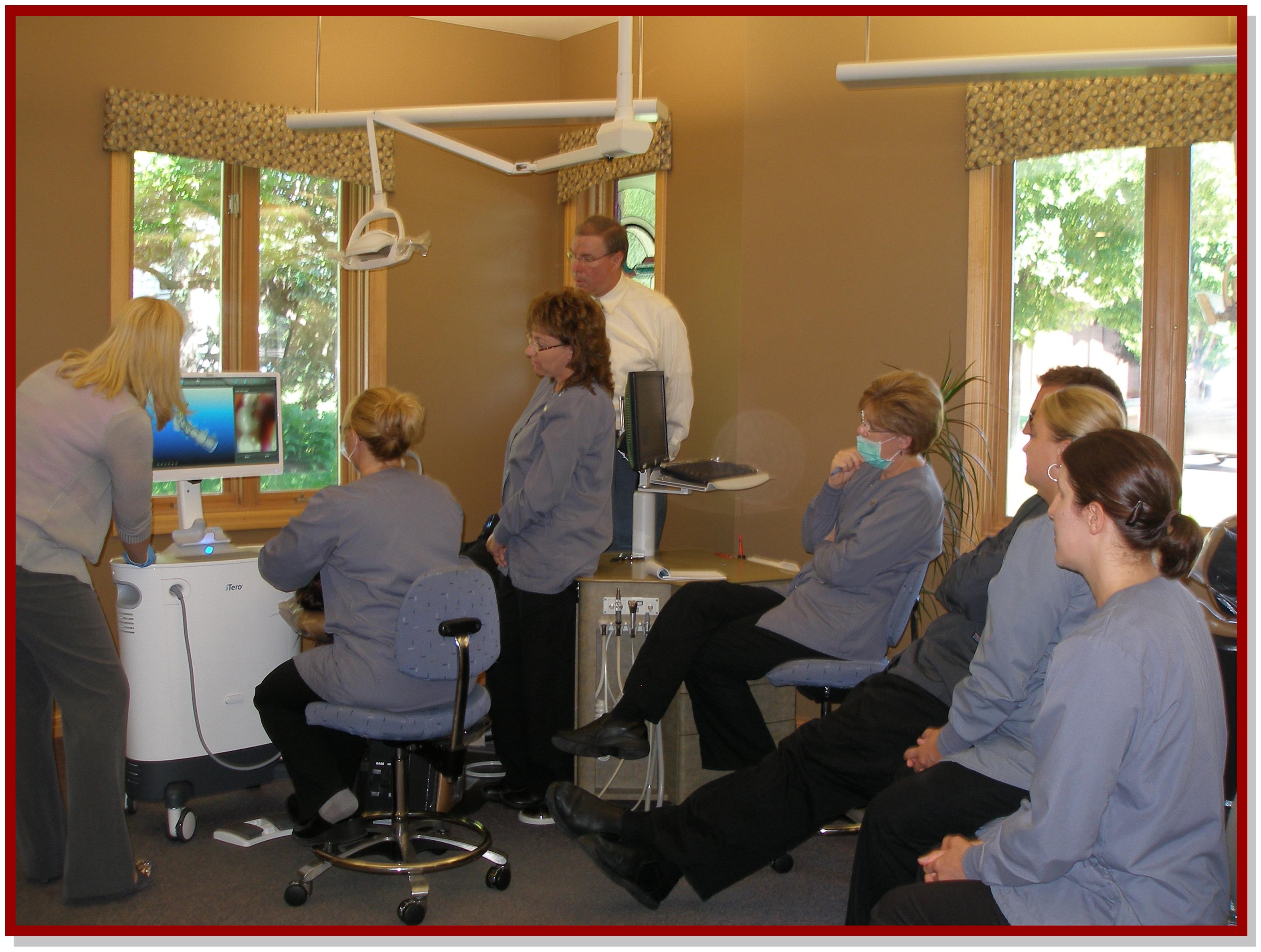 At Gabler Orthodontics we are constantly trying to improve our services to our patients. Below the Clinical Team is training on our I-Tero Scanner to help make the process of impressions a much more enjoyable experience.